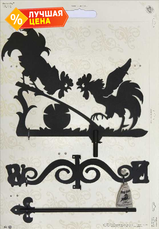Флюгер выполнен из стали, которая покрыта специальной порошковой краской, устойчивой ко всем погодным условиям, что гарантирует долговечность срока службы.