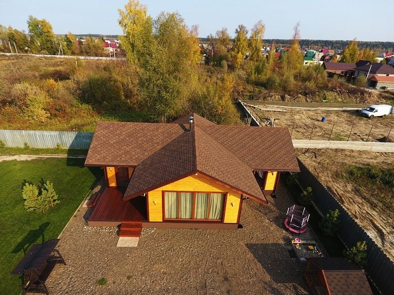 Сделали крышу на даче и довольны! Металлочерепица легкая, при этом прочная, монтировать было удобно. Цвет стойкий, без разводов, все пришло вовремя