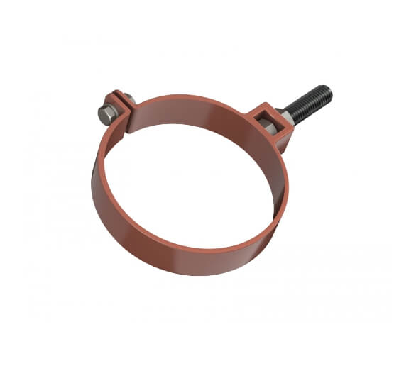 Хомут трубы ТЕХНОНИКОЛЬ металлический ПВХ красный – элемент водосточной системы, которая устанавливается на скатных кровлях. Используется, чтобы закрепить трубу на нужном расстоянии от фасада. Размер – 140 мм.