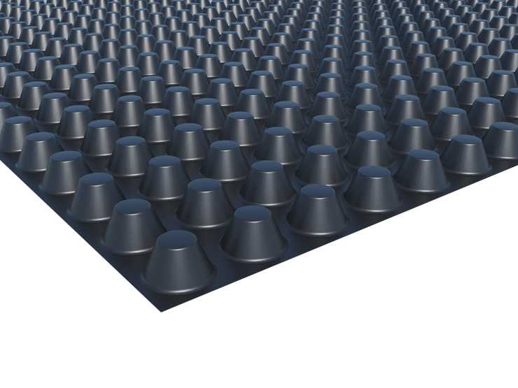МАКСИСТУД – мембрана из полиэтилена высокой плотности с равномерно размещенными по всей площади выступами в форме усеченных конусов высотой 20 мм. Материал не имеет механического замка, поэтому его полотна соединяются между собой путем простого нахл…Подробное описание