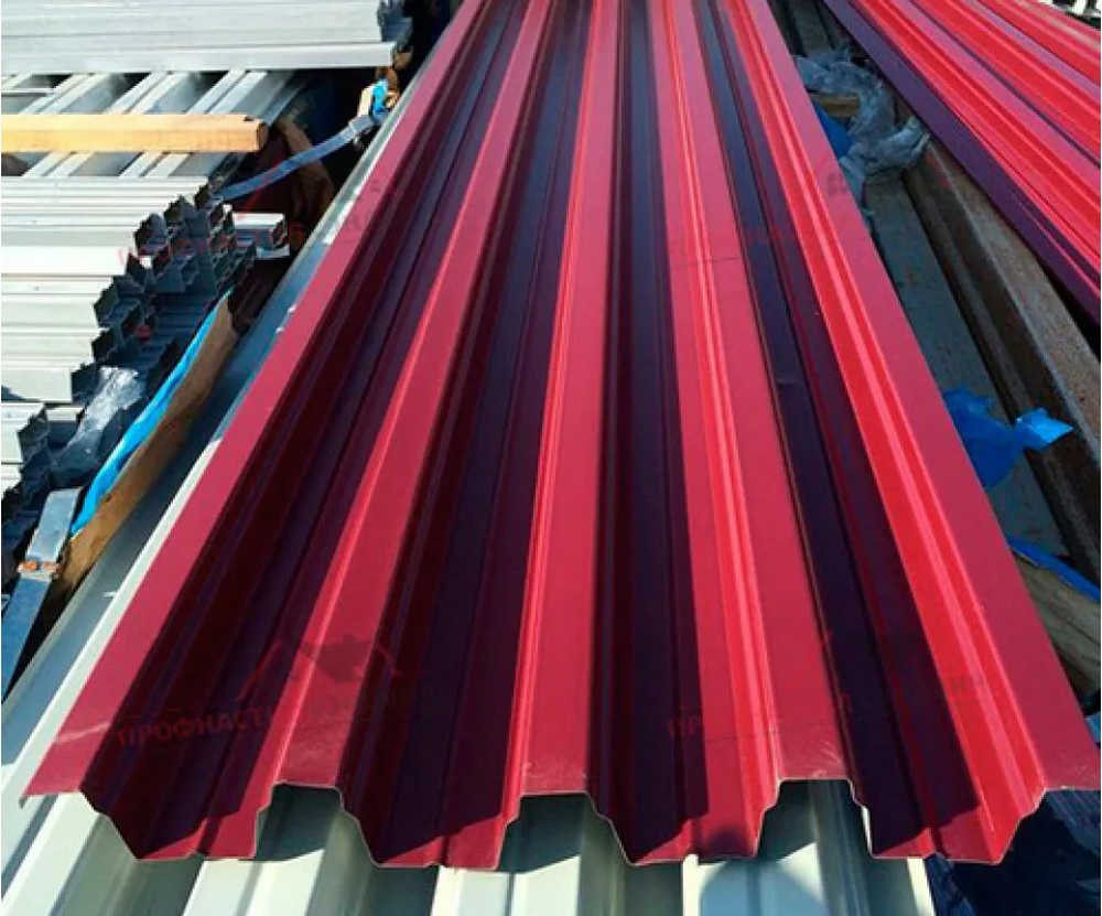 Полиэстеровое покрытие RAL 3009 Красная окись придает профлисту эстетичный внешний вид и защищает его от коррозии и воздействия атмосферных условий.