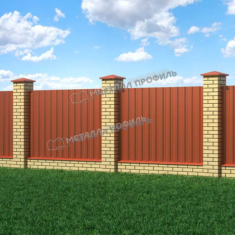 Цвет профлиста - RAL 8004 Коричневая медь, что придает ему элегантный и стильный внешний вид. Этот цвет отлично сочетается с различными архитектурными стилями и окружающей средой.