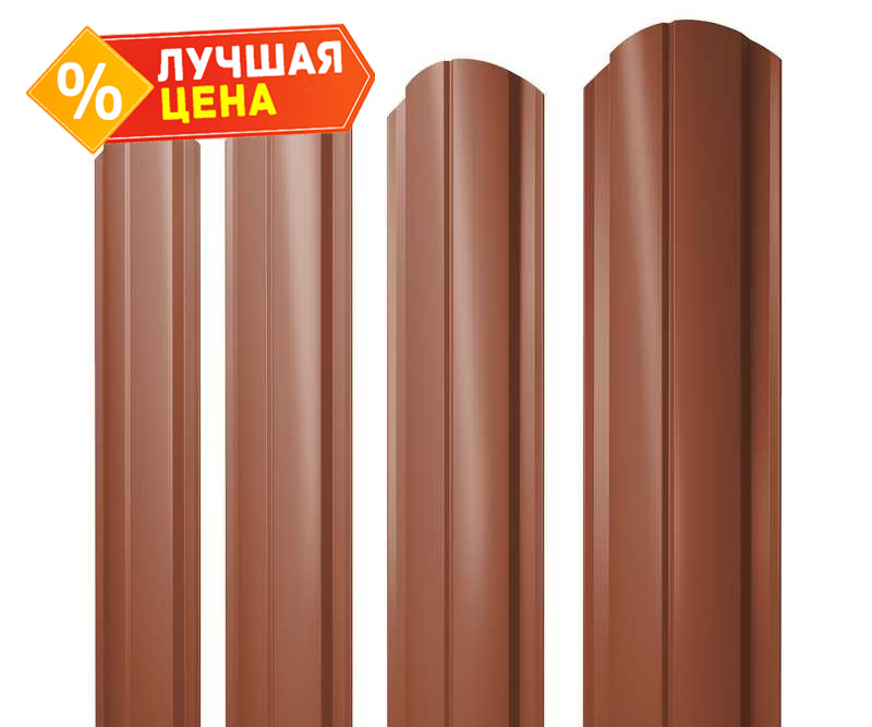 Штакетник Полукруглый Slim фигурный Grand Line 0,5 Satin Matt RAL8004 Терракота