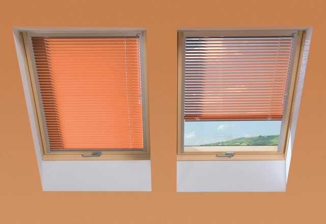 Жалюзи крепятся к створке мансардного окна при помощи алюминиевых направляющих, что исключает их провисание.